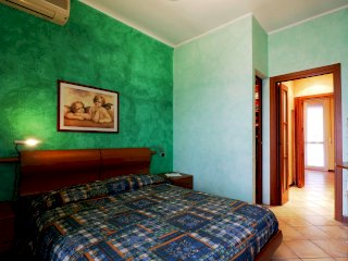 L’ingresso al piano rialzato introduce all’ampio soggiorno servito da balcone e alla cucina che è abitabile, la scala interna accompagna al piano primo dove troviamo le due camere entrambe con balcone ed il bagno.