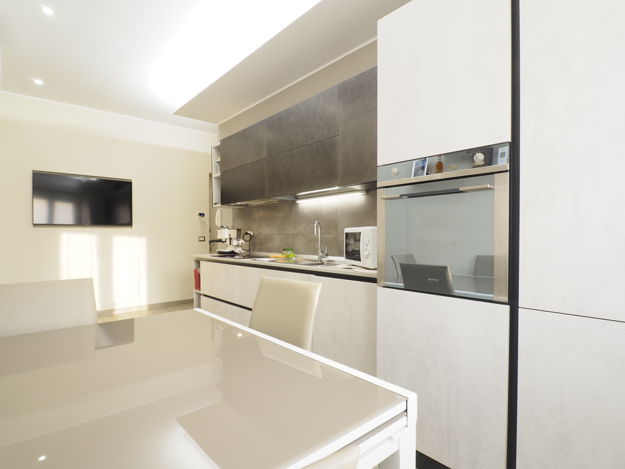 Elementi della ristrutturazione: ☑ Allarme ☑ Rifacimento impianti ☑ Tapparelle elettriche e copertura in alluminio ☑ Infissi in PVC e triplo vetro con meccanismo battente e ribalta ☑ Isolamento acustico ricreato con abbassamento in cartongesso e lana di roccia ☑ Climatizzatori Wi-Fi, regolabili direttamente dall'App anche fuori casa! ☑ Porta blindata con serratura europea